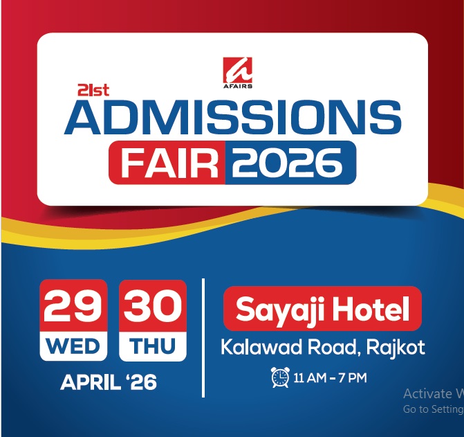 AFFAIRS,’ a leading organizer of global education fairs, is excited to announce the upcoming edition of its renowned ‘Admissions Fair’ at the Sayaji Hotel, Kalawad Road, Rajkot on 29th and 30th April, 2026. This event promises a unique experience for students eager to explore diverse study options and connect directly with India’s premier universities and colleges.