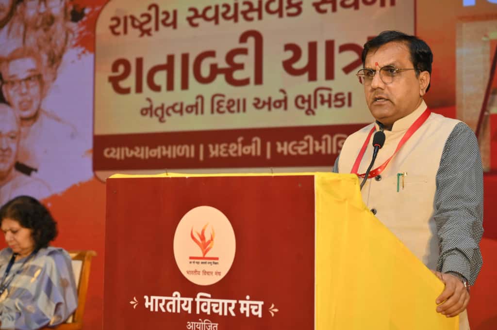 Ahmedabad: The concluding day of the four-day Lecture Series, Exhibition, and Multimedia Show—organized by Bharatiya Vichar Manch to mark the centenary year of the Rashtriya Swayamsevak Sangh (RSS)—featured a keynote address by Sah-Sarkaryavah Shri Alok Kumar Ji. He spoke on the theme “Extensive Outreach and Participation of Virtuous Forces”, reflecting the vision of the fifth Sarsanghchalak Pujya Shri Sudarshan Ji and the present Sarsanghchalak Pujya Dr. Mohanrao Bhagwat Ji.