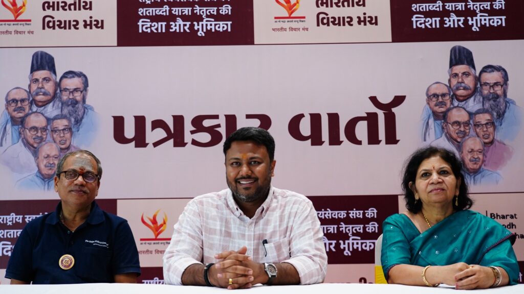 Ahmedabad, November 8, 2025: To commemorate the Centenary Year of the Rashtriya Swayamsevak Sangh (RSS), Bharatiya Vichar Manch in collaboration with Bharat Shodh Sansthan is organizing a grand Lecture Series, Exhibition, and Multimedia Show on the theme “RSS: A Century of Leadership – Direction and Role.” This information was shared by Shri Ishan Joshi, General Secretary of Bharatiya Vichar Manch.